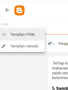 Untuk memasangnya ke dalam postingan, Anda bisa masuk ke dashboard blogspot, kemudian ubah mode editor dari Tampilan Menulis ke mode Tampilan HTML.