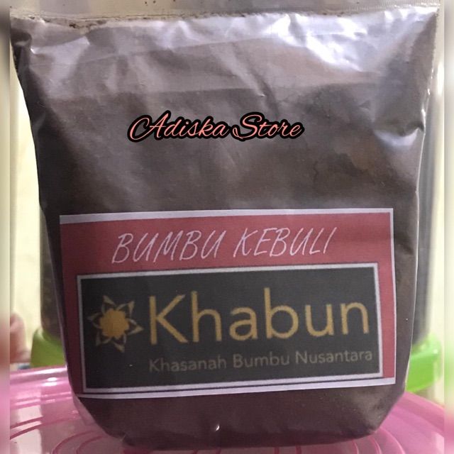 Khabun bumbu kebuli dengan bera 100 gr, cukup untuk 4 kg (5 liter) beras.